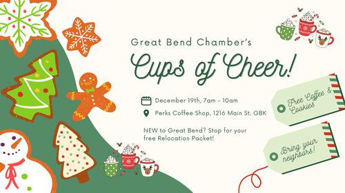 This holiday season, the Great Bend Chamber is inviting everyone to slow down, warm up, and reconnect. As part of our ElevateGBK: Beyond Today vision, we’re celebrating the people who make this community home with some feel-good gatherings centered on kindness, connection, and a simple cup of something warm.